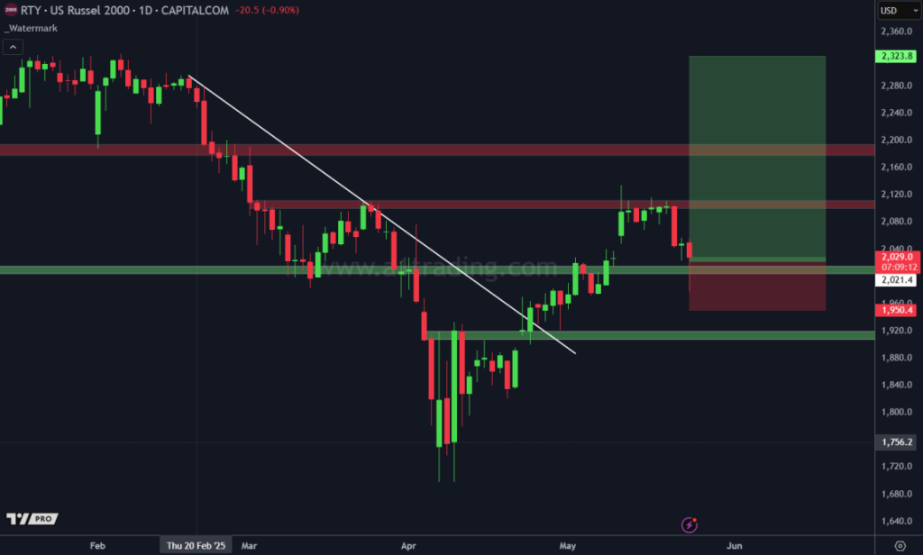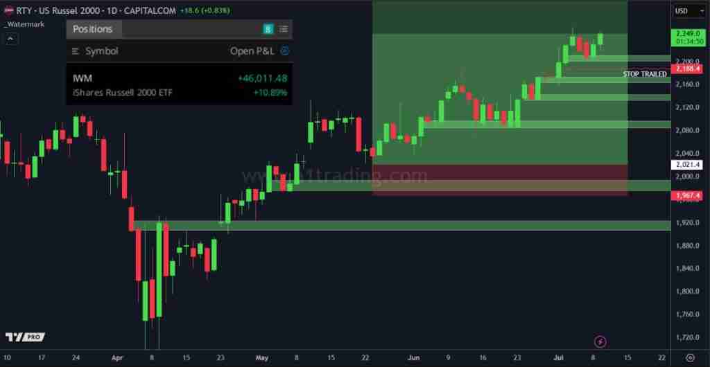 In one of his most successful trades of the year so far, Nick capitalized on a major breakout in the Russell 2000 (US2000) index, driven by a combination of macroeconomic shifts and well-timed entries. Let’s break down the trade, the reasoning behind it, and how Nick managed it with a professional trailing stop strategy.