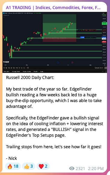 This trade was a textbook example of how Nick blends macro analysis with tools like the EdgeFinder, our proprietary market scanner. The EdgeFinder flagged the Russell 2000 as a bullish opportunity weeks before the move, thanks to its: