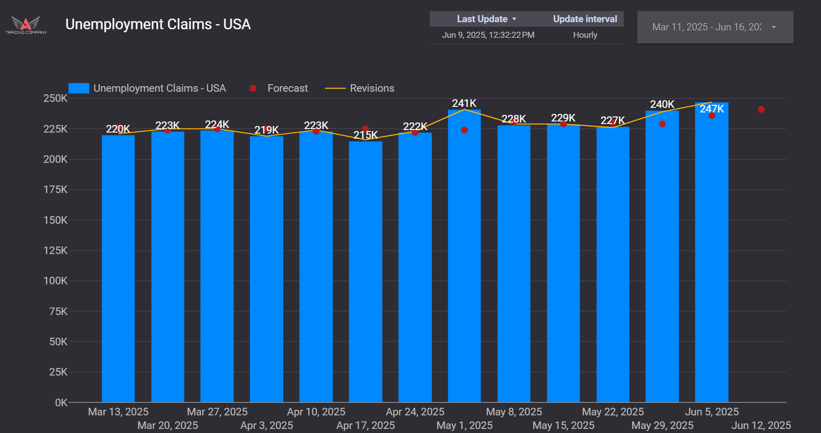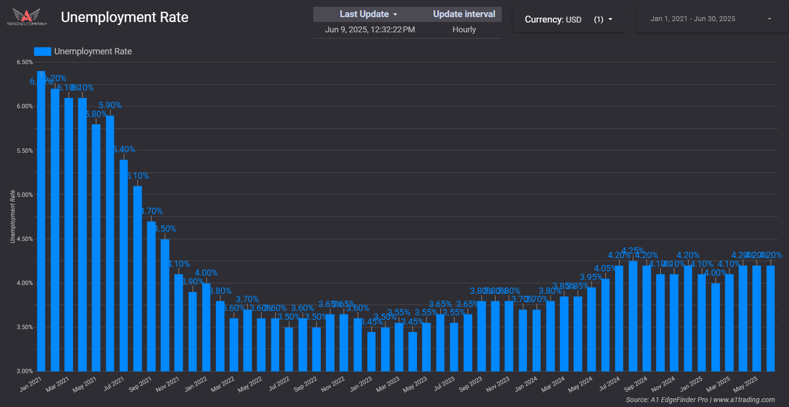 Combine with Other Indicators: Labor market data works well alongside GDP and inflation insights, offering a fuller picture of economic health. For example, strong job growth coupled with rising GDP typically reinforces a bullish outlook.