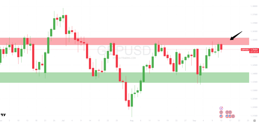 GBP/USD is pressing against resistance at 1.3600, where momentum is slowing after a solid uptrend. The pair has work to do if bulls want to push higher, with this level acting as the first real hurdle.